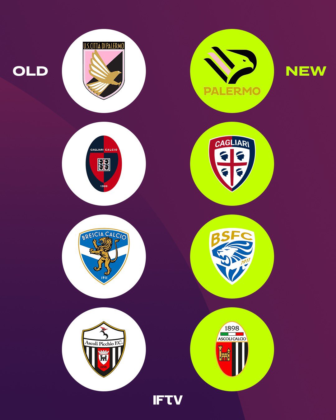 Italian Football Tv On Twitter Part 2 Old Logos Vs New Logos Take Your Pick 1 Palermo 2 Cagliari 3 Brescia 4 Ascolicalciofc Https T Co Ojj96miyno Twitter